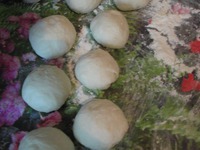 | Приготовить дрожжевое тесто. Смешать воду или молоко (1 целый и 2/3 стакана), муку (4 стакана), сахар (2 стол.ложки), соль (1,5 чайной ложки), быстродействующие дрожжи (1,5 чайной ложки), растительное масло (2 стол.ложки). Хорошо вымесить и поставить на подъём. |