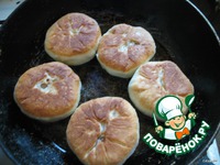 Кладем на разогретую и политую растительным маслом сковороду беляши шовчиком вниз |