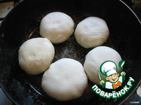 каждый такой колобок расплющиваем в лепёшку. Кладем фарш и защипляем края (как мешочек) |