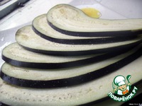 Баклажаны вымыть, срезать плодоножку и нарезать тонко на слайсере. Посыпать солью и оставить на 10 минут. Вытереть выделившуюся влагу салфеткой. |