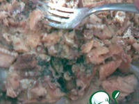 Слить жидкость из консервов, хорошо размять вилкой рыбу |