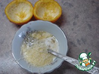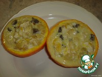 Заполнить половинки апельсина полученной массой. Поставить в духовку на 15-20 мин. Подать горячим. |