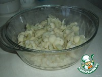 Капусту отварить. Я готовлю в микроволновке. 7 минут при ПМ (полной мощности) под крышкой. После этого капуста должна 5 минут постоять. |