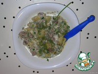 Не перемешивать: желудочки тушатся в бульоне, а овощи при этом готовятся на пару. |