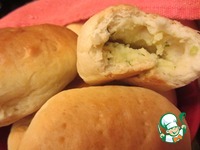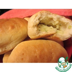 Смазать пирожки сверху взбитым яйцом. Наколоть вилкой в нескольких местах и выпекать пирожки 20-25 минут до золотистого цвета. Горячие смазать сливочным маслом. И..., приятного аппетита! |