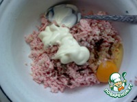 В фарш добавить яйцо, майонез, перец, соль, муку. Вымесить фарш. |