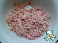 Крабовые палочки прокрутить через мясорубку с луком и картошкой. |