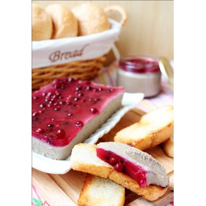 Раскладываем паштет в формы. Необходимо несколько раз хорошенько стукнуть формой об стол, чтобы паштет хорошо осел, сверху выкладываем ягоды брусники |