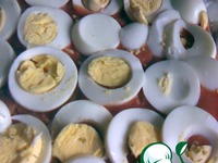 Oтварить яйца, почистить и порезать кольцами. |