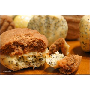 У Вас должно получиться очень нежное мягкое тесто. Его делим на две равные части. В одну часть добавляем какао, а в другую - мак. |