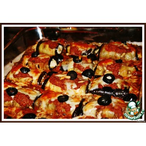 9. На баклажаны выкладываем мoццареллу, кедровые орешки и маслины (дольки). |