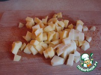 Режем картофель кубиками. И кладём в кастрюлю с кипящей водой. |