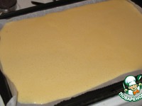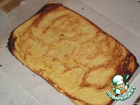 3. Готовый рулет переворачиваем на бумагу, снимаем бумагу, на которой выпекался, слегка остужаем, |