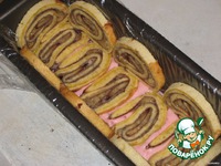 10. Затем залить заливку и выложить еще рулета. Продолжать чередовать слои заливки с рулетом, последний слой должен быть рулета. |