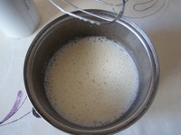 Муку размешать в молоке, влить в желтки, перемешать. |