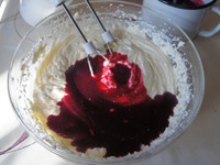 И соединить с черносмородиновым пюре. Влить пюре в творожно-сливочную массу и перемешать. Вот теперь готова наша творожная масса. |