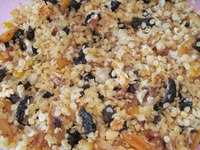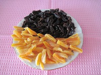 Курагу и чернослив залейте горячей водой на 10 минут. |