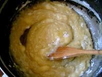Приступаем к самому интересному этапу приготовления этого пирога: варим тесто! Разогреваем в кастрюльке масло с сахаром, немного провариваем (все делаем на самом маленьком огне), добавляем сметану... |