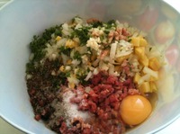 добавить соль, яйцо, черный перец и зиру. Еще раз хорошо перемешать. |