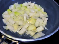 Две луковицы нарежем кубиками и обжарим на сковороде. |