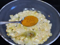 К луку добавим все специи и бахарат. Это блюдо очень острое! Так что при приготовлении ориентируйтесь на свой вкус. |