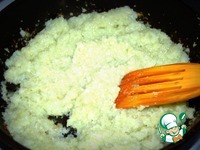 Лук и чеснок измельчаем в блендере и обжариваем на сковороде на масле до сладкого однородного вкуса. |