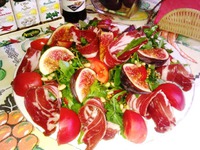 Нарезаем помидорки небольшими ломтиками. Добавляем к рукколе и перемешиваем. |