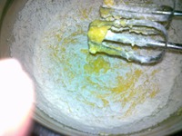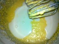 добавляем часть молока и опять взбиваем, добавляем ванильный сахар, цедру и апельсиновый сок и опять взбиваем, добавляем остальную муку и молоко и взбиваем, все, тесто готово. |