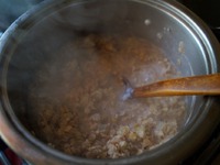 В кастрюлю к чечевице добавить обжаренный лук, курагу и орехи. Варить на слабом огне, постоянно помешивая, 10-15 минут. |