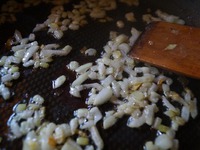 Лук обжарить до прозрачности на разогретом масле, всё время мешая, он не должен зажариться. |