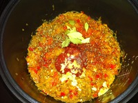 За 20 мин. до окончания добавляем томат.пасту, чеснок, соль, перец, специи. |
