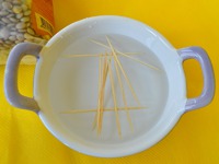 Зубочистки по количеству луковиц замочим в воде минут на 10. |