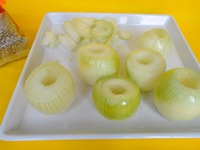 Удалим из лука серединку. Лук из серединки не выбрасываем, будем его жарить. |