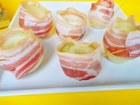 Берем наши луковицы-чиполлино и оборачиваем пончеттой, закалываем зубочисткой. |