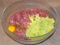 Филе индейки (можно использовать говядину, свинину, курицу) прокрутить на мясорубке. Капусту, лук, морковь измельчить блендером. Добавить яйцо. Соль, перец. Тщательно перемешать. |