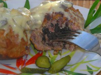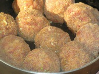 Из фарша сформировать лепешку. На неё положить шарик из пюре фасоли. Сформировать колобок, обвалять в панировочных сухарях. |