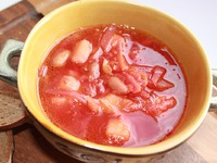 Описание: Этот рецепт я нашла на страницах кулинарного журнала. Вкусный, насыщенный, ароматный борщ. Я просто уверена, что с фасолью вы никогда раньше не пробовали, а зря. Очень советую. Фасоль "пинто" имеет характерные пятна, из-за этого и получила свое название. В переводе с испанского это слово означает "раскрашенн ая". При варке пятна пропадают и фасоль становится равномерного цвета. Фасоль популярна в различных кухнях народов мира, содержит много минеральных веществ и растительного белка.