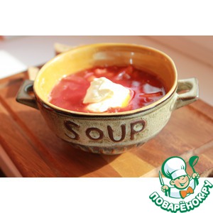 Подавайте борщ со сметаной, подсушенными кусочками ржаного хлеба или зеленым луком (на ваш вкус). Приятного аппетита. |