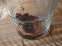... перемешать деревянной палочкой и быстро воду слить, стараясь не выплеснуть чайные листья. |