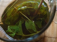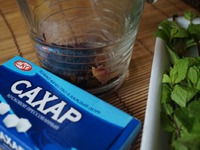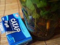 К чаю положить всю мяту и сахар. |