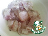 Филе помыть, обсушить, порезать порционными кусками. Посолить, поперчить по вкусу. |