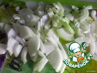 Слегка обжарить лук. В процессе обжаривания добавить щепотку сахара. |