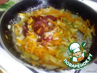 После добавить морковь и обжарить ещё несколько минут. |