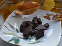 Пока молоко закипает, поломаем шоколад на кусочки. |