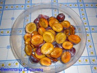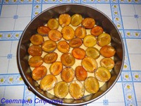 В промежутках между сеточкой укладываем четвертинки слив, слегка вдавливая их в розовую пенку. Выпекаем пирог в разогретой до 180-190 С духовке в течение 50 минут. |