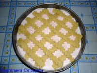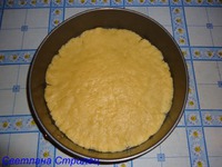 В смазанную маслом разъемную форму выкладываем две трети теста, распределяем по дну формы. |