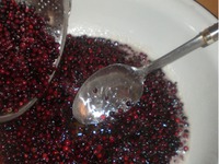 Ягоду замачиваем в кипятке на 3 мин., чтоб вышла горечь. |