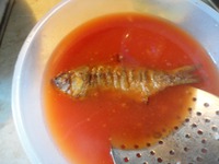 Готовых карасей буквально на 5 секунд опускаем в чесночно-томатный раствор. |