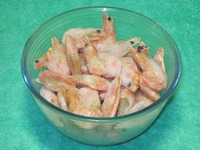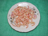 Залить креветки горячей подсоленой водой на несколько минут. |