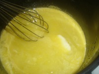 Добавьте лимонный сок (3-х лимонов), перемешайте. Добавьте яйца, взбейте полученную смесь венчиком. |